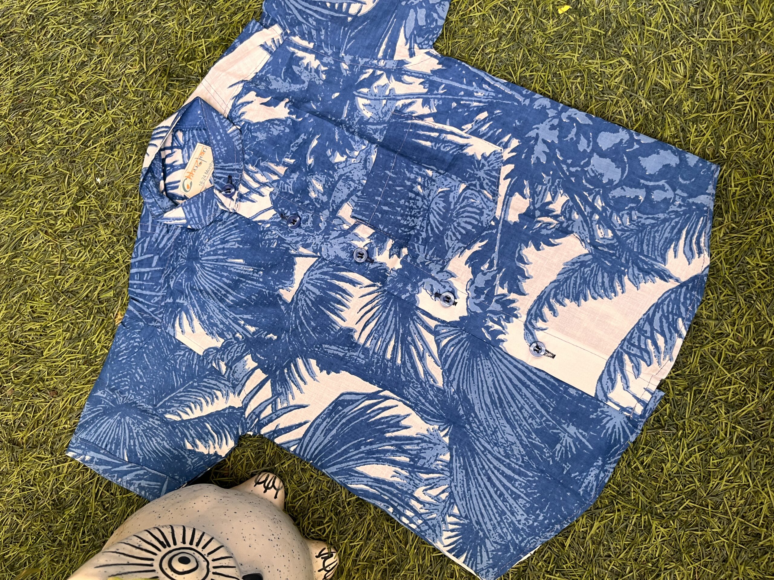 Blue white palm tree pure cotton shirt