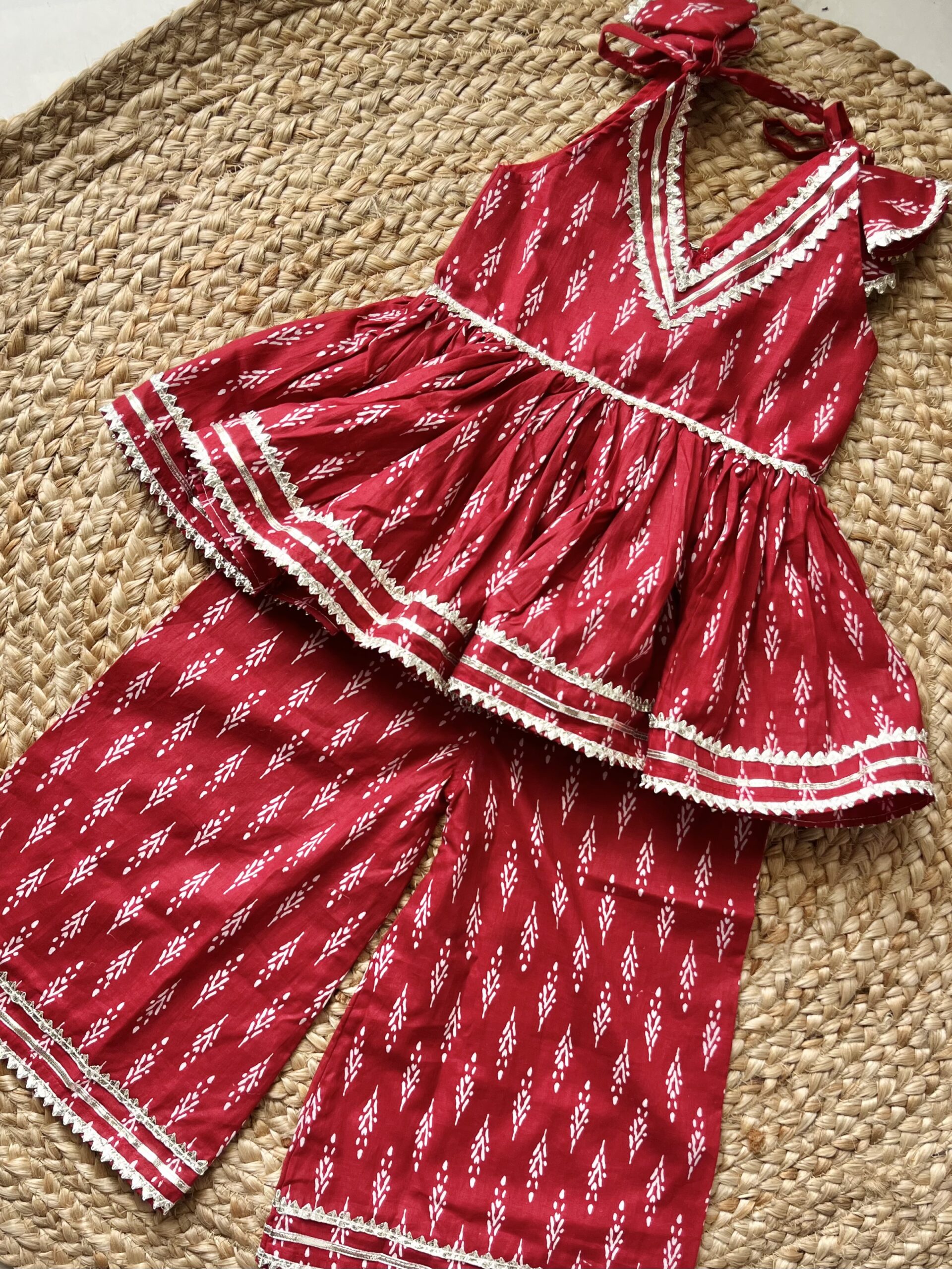 The Mehroon Ikkat Print Plazo Set strikes the perfect balance between contemporary trends and traditional elegance. Crafted with a mesmerizing mehroon hue and adorned with intricate ikkat print details, this three-piece set is designed to make you stand out in any celebration or casual gathering. Whether you’re attending a festive occasion or a relaxed outing, this ensemble elevates your look effortlessly with its rich, cultural charm.