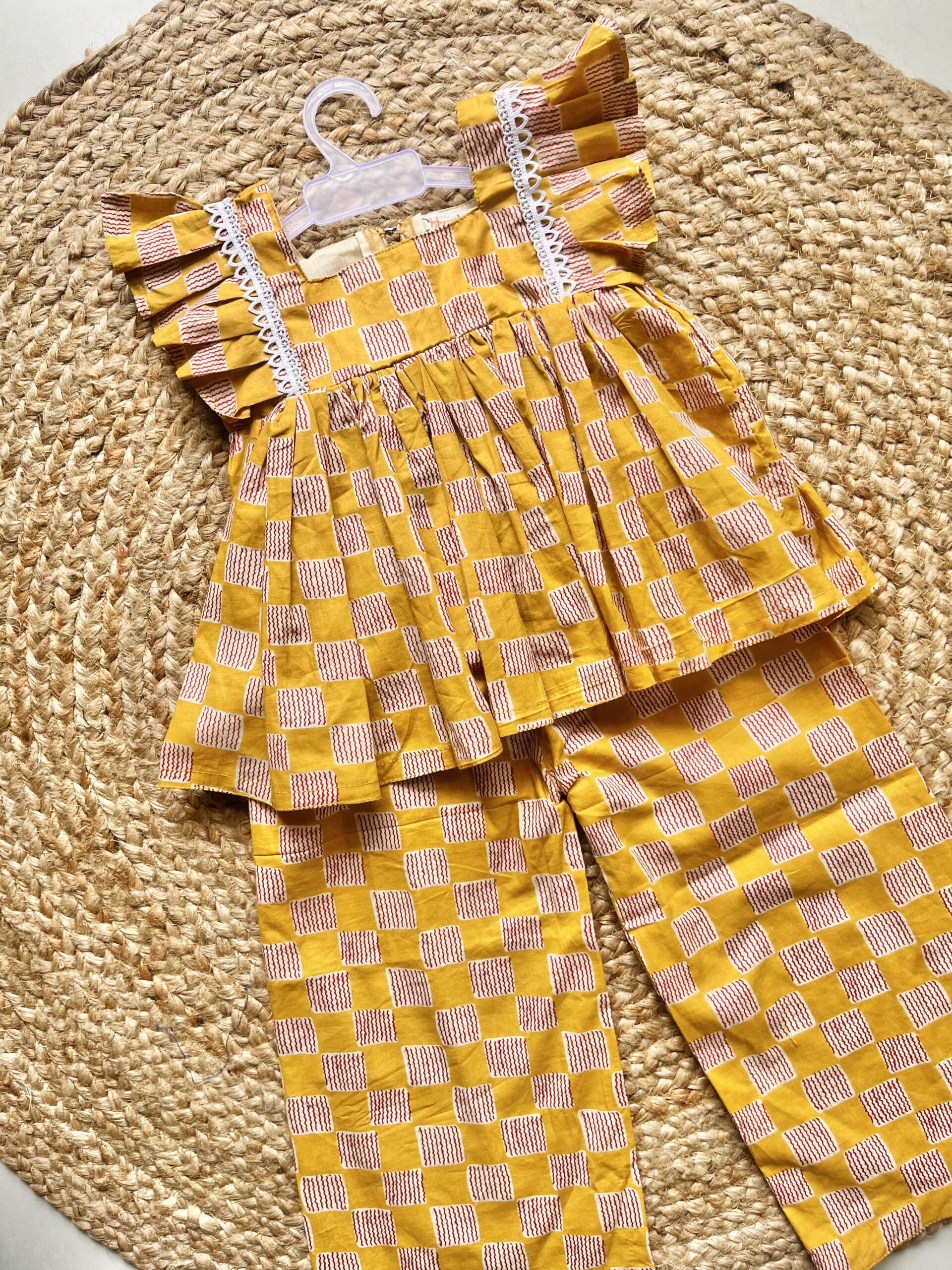 Mustard yellow sanganeri printed coord set