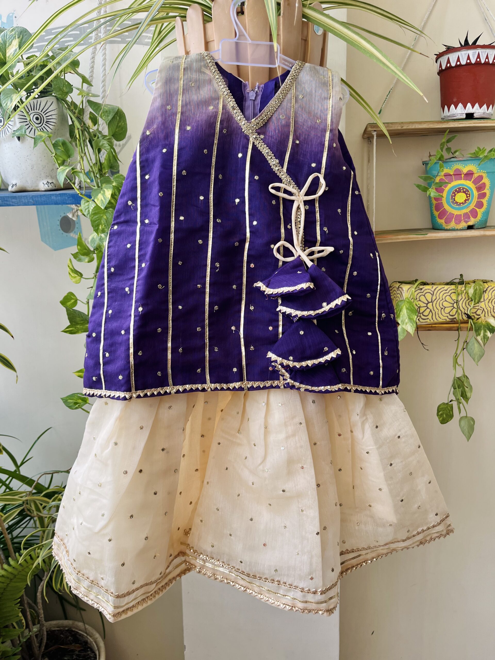 Purple Cream chanderi sharara with Align kurta