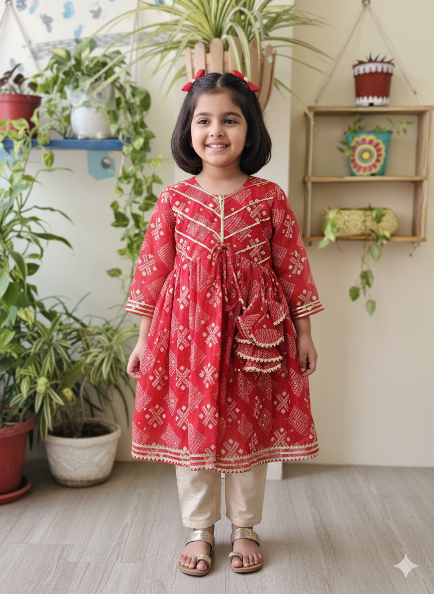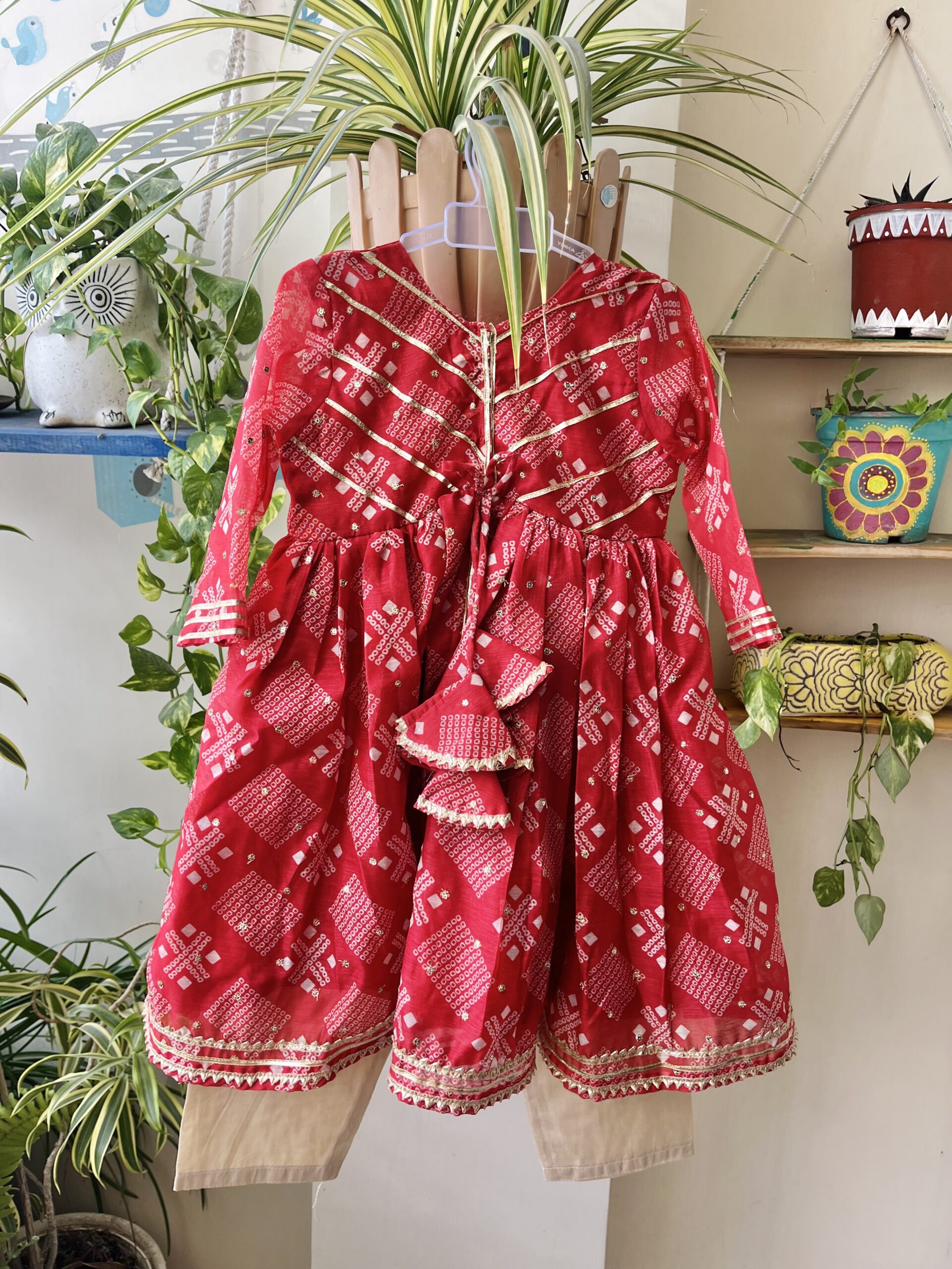 Elevate your ethnic kid’s wardrobe with the exquisite Chanderi Anarkali paired with comfortable cotton pants. Designed for modern women who adore traditional styles with a contemporary touch, this outfit combines opulence, functionality, and style in one beautiful ensemble. Its intricate craftsmanship, featuring the renowned Chanderi fabric, is synonymous with elegance and grace, ensuring you stand out wherever you go.