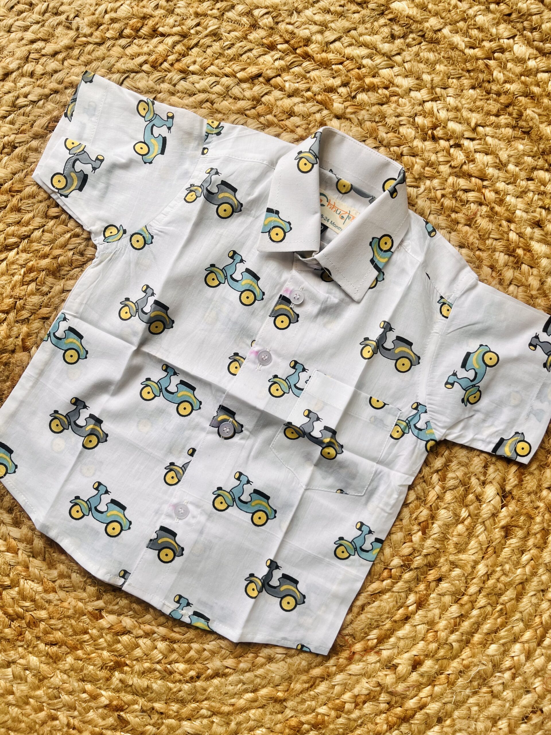 Scooter print white pure cotton shirt